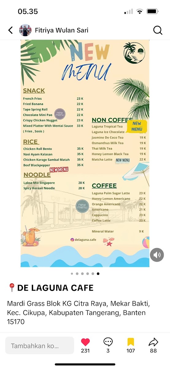 Welcome to DE LAGUNA CAFE, a delightful café nestled in Mardi Grass Blok KG, Citra Raya, Tangerang. This establishment beckons you to unwind with its vibrant atmosphere and cheerful service. Guests consistently praise the humble and friendly staff, enhancing the overall experience.